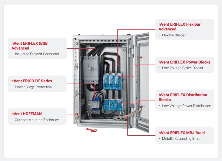 nVent provides a range of solutions for electrical panels that allow for greater design flexibility, including more ways to compress an electrical panel and overcome spatial limitations. nVent product solutions are highly compatible within a panel, making it easier to configure and scale, both key advantages for electrical systems across many renewable applications.