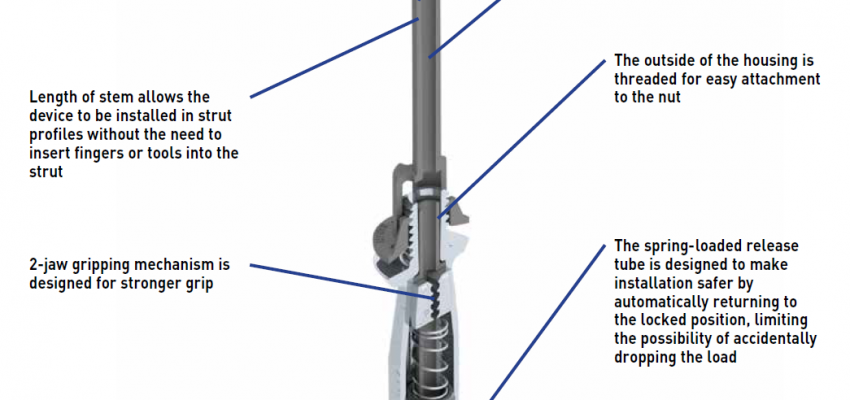 Wire rope support systems provide many benefits that make them a superior support method for numerous light and medium-duty applications when compared to threaded rod, jack chain, and metal strap. The CADDY SPEED LINK SLS Strut Locking Device is designed to attach directly to strut, basket tray, fan units, C-channel, and the CADDY TSR.