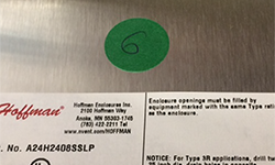 Si el producto cumple con los criterios, se coloca la oblea con el número de identificación dentro del gabinete cerca de la etiqueta de UL. Esta oblea nos ayudará a identificar las líneas de fabricación y los operadores en los que se producen errores para evitar que el problema se repita en los reenvíos y pedidos futuros. Este proceso de colocación de obleas ha comenzado en nuestras ubicaciones de fabricación de Anoka y Reynosa en líneas de productos seleccionadas y pronto se implementará en otros productos de gabinetes y ubicaciones de fabricación con el correr del tiempo.