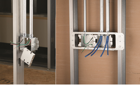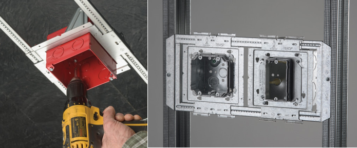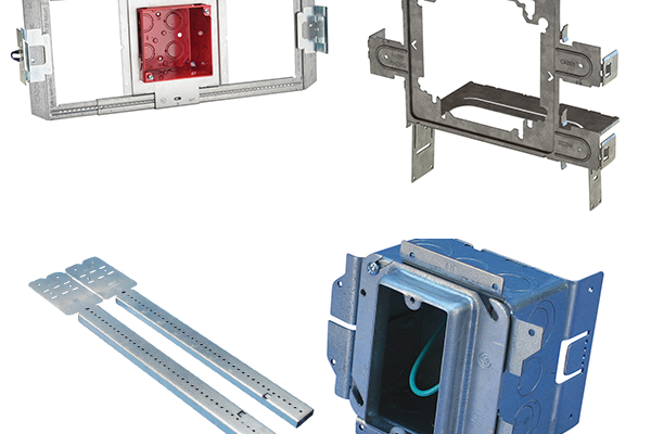 Rounding out the full in-wall offering is a variety of screw gun brackets and raceway support products. These products include time-saving features including snap-to-stud, self-leveling benefits for consistent and professional installation, easy-to-use locking tabs and many more to make the job go quick. These product solutions work with EMT, MC/AC and flexible conduit and can be used for wood or metal studs.