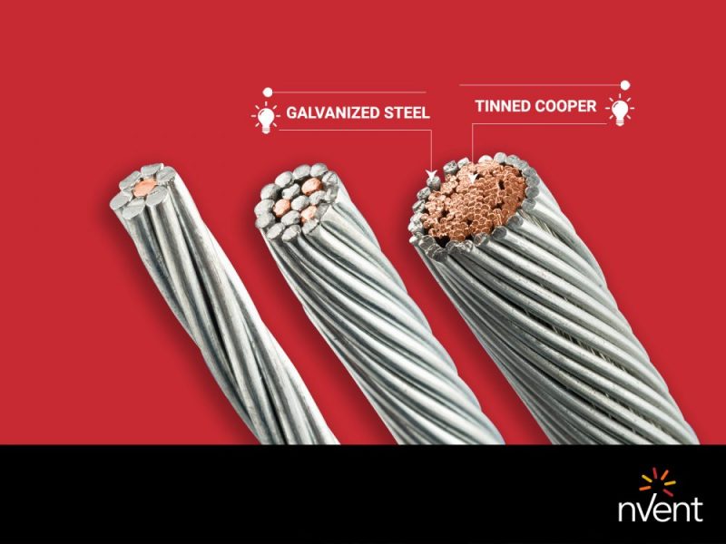 The solution, the nVent ERICO Cu Bond Composite Cable, is made of tinned copper wire strands on the inside and a ring of tinned copper bonded steel strands on the outside. This cable contains enough copper and steel to achieve the conductivity and performance needed in grounding systems. The tinned copper bonded steel construction of the cable also protects against corrosion, which means that engineers can bury the cable directly in the ground without worrying about damage over time.