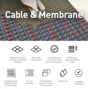 The nVent NUHEAT Membrane is also compatible with a handful of modified thinsets. Click here to see a full list of these certifications and to learn more about nVent NUHEAT Cable & Membrane.