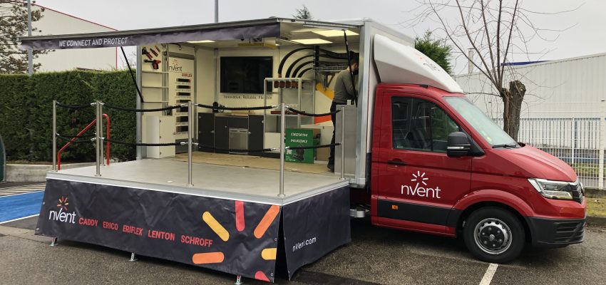 “We’re literally taking nVent ERIFLEX FleXbus to our customers,” said Product Manager Frédéric B. “When our sales teams talk with customers we say, ‘We can bring the truck to you and do a demo,’ which our customers love. Since our audience is electrical contractors and prefabricated substation manufacturers, we hired an electrical contractor to drive the truck and do the demos. They can customize the demo and our customers can touch the products, take it in their hands and play with it, and see how the installation works.”
