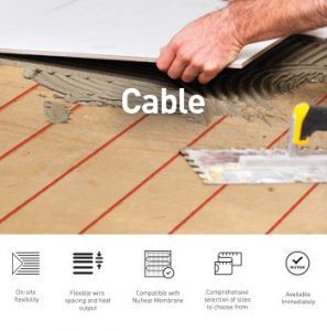 nVent NUHEAT Cable is a floor heating cable system that is configured on-site during installation. nVent NUHEAT Cable kits come in 33 different sizes. Choose the cable kit that is best suited for the size of room/area and configure on-site to provide floor heat in the desired areas of the room. This product is compatible with the nVent NUHEAT uncoupling Membrane and provides a great integrated uncoupling and heating solution. Lastly, nVent NUHEAT Cable is available right off the shelf making it easy to get a hold of!