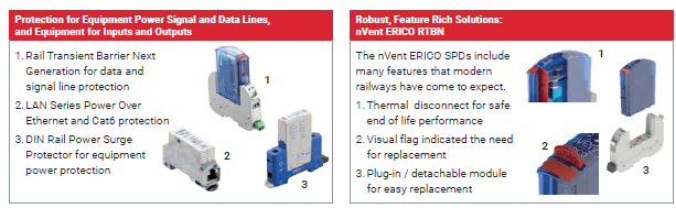 All these benefits are part of nVent ERICO’s superior performance when it comes to the rail SPD offering, plus max surge ratings and compliance with key industry standards including AREMA, IEC, UL and more.