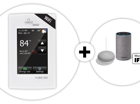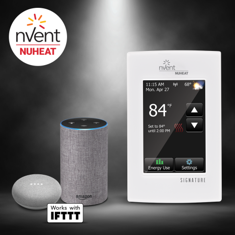 nVent NUHEAT Signature is now the first WiFi-enabled line voltage thermostat to connect with all of these platforms: the Google Assistant®, Amazon Alexa®, IFTTT®, Crestron®, Control4® and URC®!…
