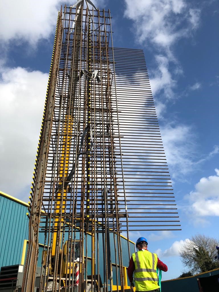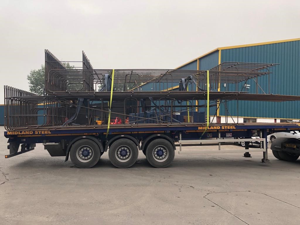 In traditional construction, workers assemble cages at job sites out of loose reinforcing bars (rebar). However, these reinforcement cages can also be assembled offsite—a process called prefabrication, or “prefab,” such as the FasterFix solution offered by Midland Steel. When the cages arrive prebuilt, workers can immediately lift the cages into place which speeds up the start of concrete pours and saves time that would otherwise be spent on assembling cages.